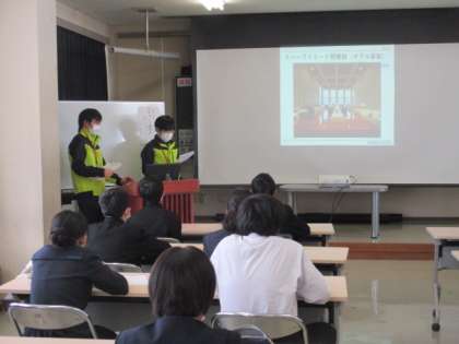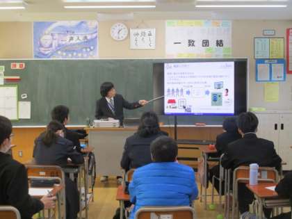 富山県機電工業会に加盟する3社(株式会社アイザック、コーセル株式会社、株式会社タカギセイコー)から社員の方を派遣していただき、生徒は3社のうち2社から各社の業務内容の説明や仕事に対する心構え、ものづくり体験等の話を聞き、今後の進路選択の参考にしていました。