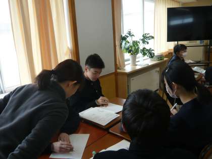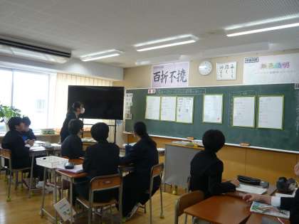 「電圧の大きさにはどんな関係があるのか」を学習課題に、各班の実験結果をクラス全体で共有しました。生徒は、前回の実験と比較しながら考察を深めました。