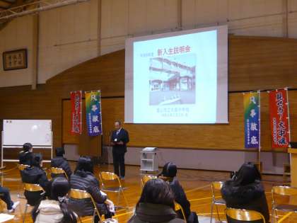 新入生説明会では、中学校生活について、各担当者から説明を行いました。