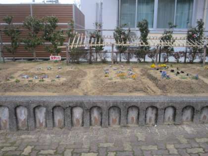 玄関前の花壇にはパンジーが植えてあります。