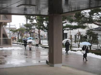 本日はまだ少し路面に雪が残っているため、自転車に乗ってくる生徒はいなかったようですが、今後も凍結の可能性もありますので慎重に判断してほしいと思います。