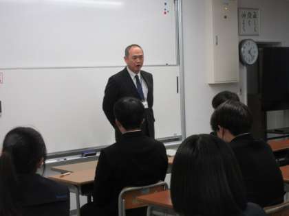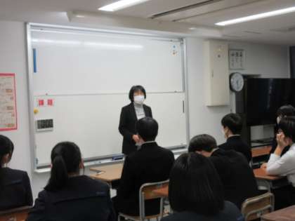 明日からの県立高校一般選抜を前に、3年生は学年集会を行いました。校長先生から激励の言葉をいただき、学年主任からは熱いエールが送られました。