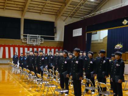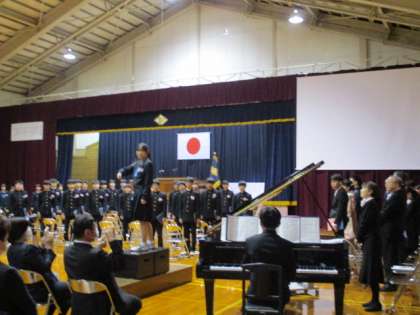 在校生は「おめでとう」、卒業生は「ありがとう。そして、これからも頑張るぞ!」と、互いに心を込めて「旅立ちの日に」を歌いました。