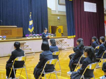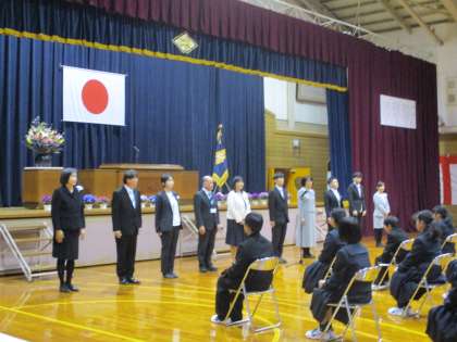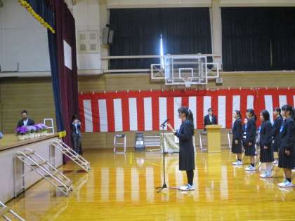 在校生からの歓迎の言葉、新入生誓いの言葉、職員の紹介の様子です。