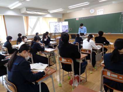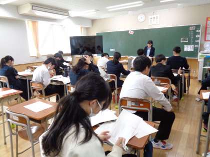 1組は社会科です。積極的に発言しています。