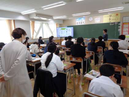 体育は、整列、隊形等の練習をしていました。担当の先生から合格をもらい喜んでいました。