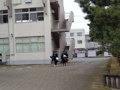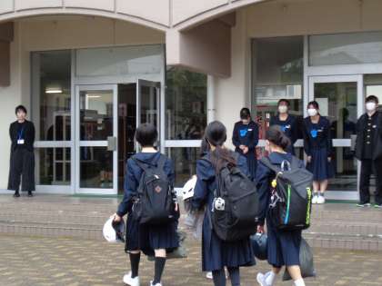 小雨が降っています。今日も執行部が元気に挨拶運動をしています。