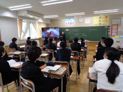 1組は技術家庭科で、幼児の特徴について意見を出し合っていました。
