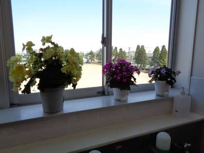 校舎内の窓際に花鉢があります。水やり等のお世話ありがとうございます。