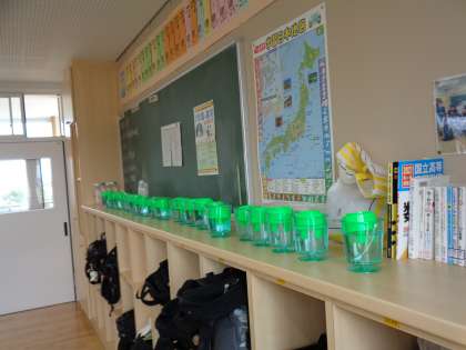2年生の教室で何か栽培しているようです。大きくなるのが楽しみですね。