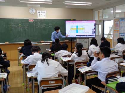 1年生は社会科です。緯線と経線、どちらが縦?確認していました。