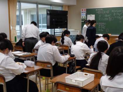 2年生です。数学では、友達同士で相談したり、先生に教えてもらったりしています。