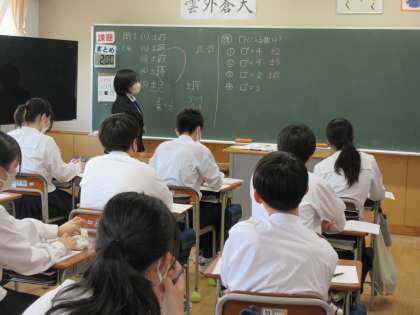 3年2組は教育実習生が数学の平方根の授業を行いました。√をどんなときに使うのかを理解しました。