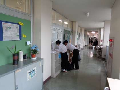 今日の授業の変更があるようです。クラスの担当者が朝学活前に確認しています。