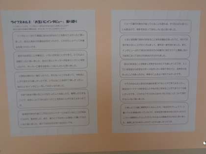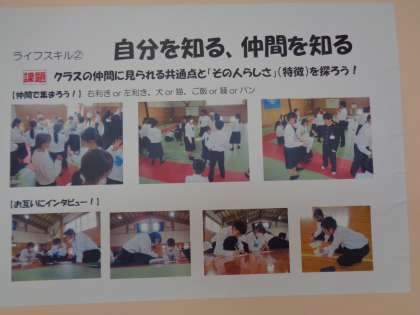 1年生でライフスキルの授業をしました。写真と振り返りが掲示されています。