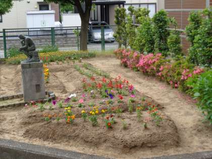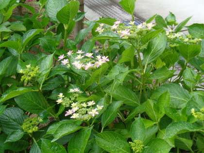 環境委員会が花壇を整備してくれました。アジサイの花が色付き始めています。