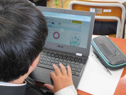1年生の数学は、学習課題に取り組んだ後に、学んだことを定着するためにクロームブックでクラウド教材に取り組みました。