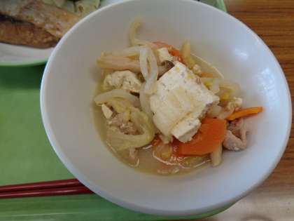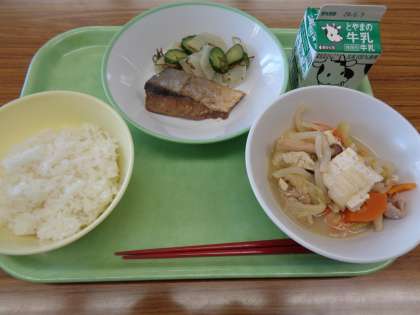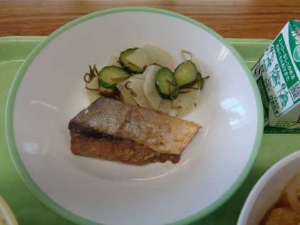 今日のメニューは、ごはん、牛乳、ふくらぎの西京焼き、昆布和え、肉豆腐です。美味しくいただきました。