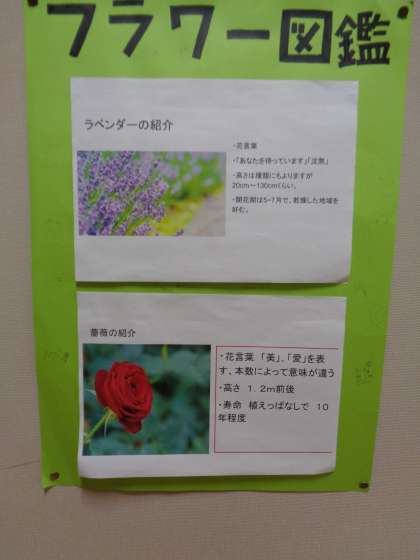 フラワー図鑑が掲示されました。季節の花が紹介されています。