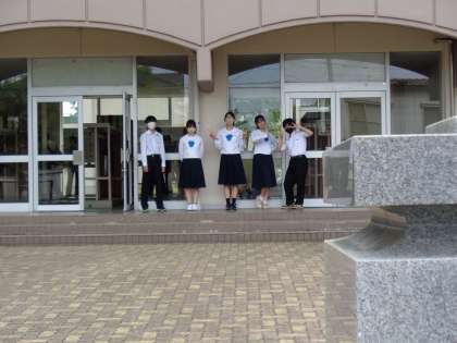 今朝も天気がよくさわやかです。玄関では、挨拶運動をしています。気持ちのよい挨拶が聞こえます。