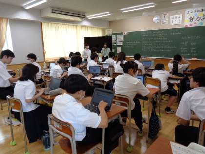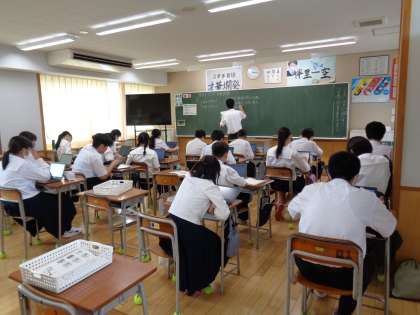 2年生です。ブラッシュアップタイムにプラスして、黒板にも問題が書かれています。