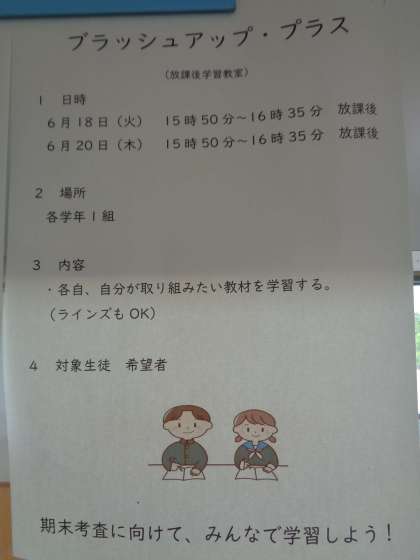 火曜と木曜の放課後は、ブラッシュアップタイムプラスの時間です。希望者は教室で学習します。