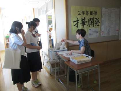 5,6限の総合的な学習の時間を使って、14歳の挑戦の事前事業所訪問を行いました。先日、生徒自身で訪問のアポイントメントを取り、今日は、ポスターや自己紹介カードを持参し、徒歩や自転車で訪問しました。