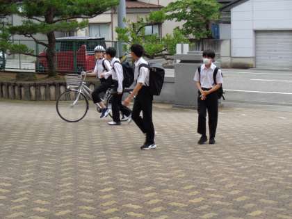 今日は曇り空です。ちょっと蒸し暑くなっています。熱中症の危険があるので、登下校でのマスクをできるだけ外しましょう。ご家庭でも声かけをお願いします。
