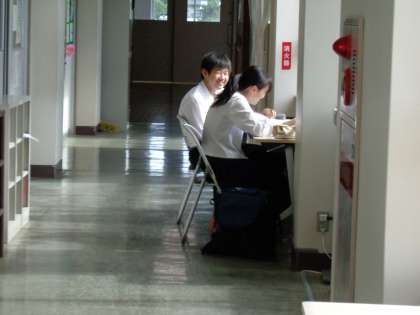 今日は、期末考査最終日です。職員室前の自習スペースで学習しています。