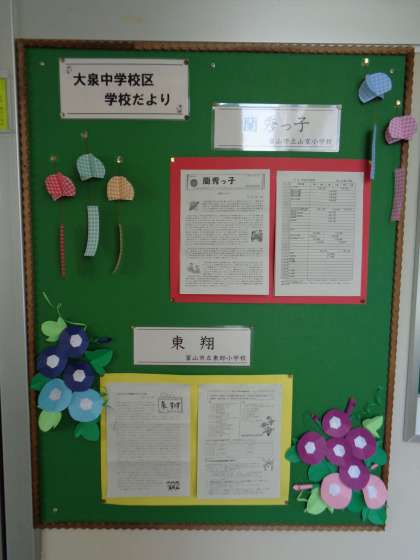職員室前の掲示が夏になりました。風鈴の音が聞こえてきそうです。暑い廊下ですが、少し涼しく感じますね。
