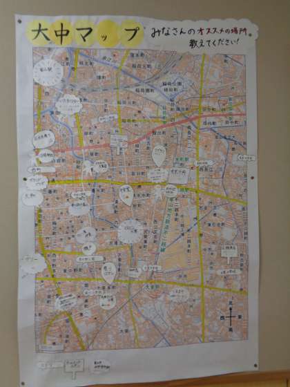 執行部が作った大中マップに、校区のおすすめ場所が増えてきました。「社会に学ぶ『14歳の挑戦』」の事業所もありますね。