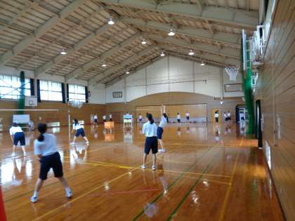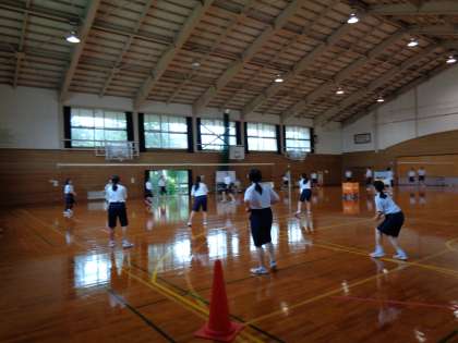 1組は英語でした。2人の先生が担当してしています。2組は、保健体育でした。体育館で男女に分かれて、バレーボールの試合をしていました。担当の先生がマイクで励ましてくれていたので、試合が盛り上がっていました。