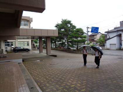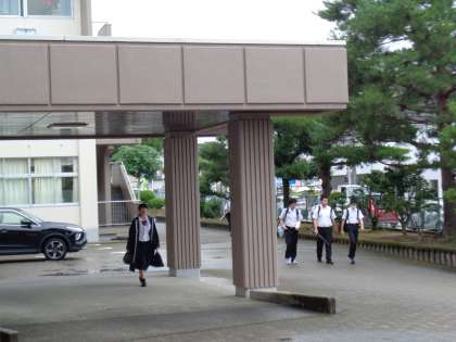 今朝は、雨が降っています。傘、長靴、自転車通学生は雨合羽等各自でしっかり雨対策をしています。