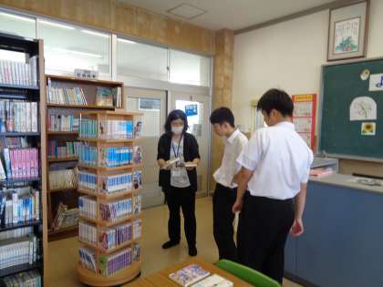 先週、国語の授業で図書室を利用しました。司書の先生にもおすすめの本を聞いてみましょう。