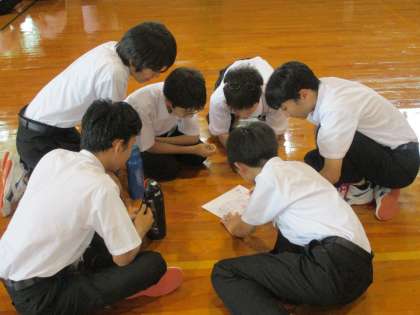 内容は、猛獣狩りゲーム、トップランキング当てゲームでした。チームで真剣に考えて、答えていました。