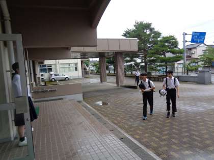 今朝は雨が降っていましたが、登校時間はちょうどやんでいました。