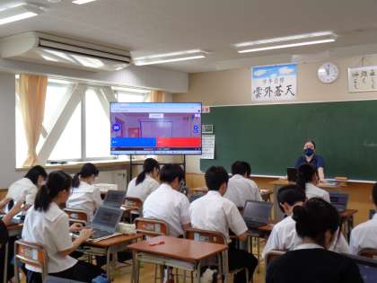 3年生は、技術家庭科と英語でした。技術家庭科では、マークについて相談していました。英語は、ALTの先生のクイズに答えていました。