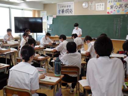 2年生は国語と学活でした。国語では、好きな短歌の感想を発表していました。学活では、SNSの使い方について、確認していました。