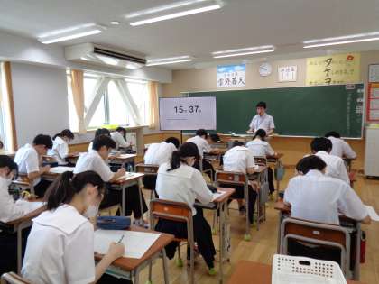 数学は、テストでした。保健体育は、バレーボールの試合をしていました。暑い中ですが、一生懸命に取り組んでいました。