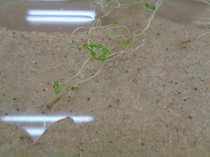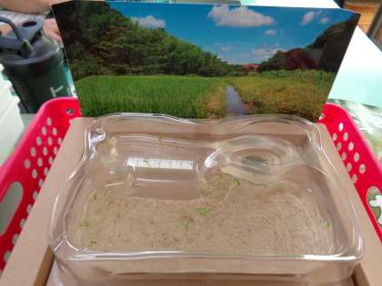 1学期の終わり頃から、カブトエビを育てています。夏休みに入るので、職員室にいどうさせました。体長は1cmほどですが、少しずつ大きくなっています。成長の様子をホームページでお知らせします。見たい人は、職員室まで来てください。