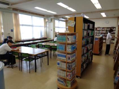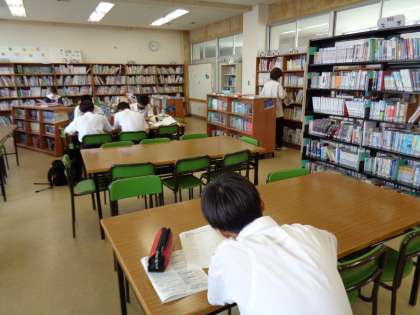 図書室で、自主学習や読書をして自分磨きをします。今年は保護者の方や地域の方に活動の見守りを協力していただきます。3年生は、朝から図書室で学習を進めています。読書感想文のために本の貸し出しも行っています。生徒の皆さんの参加を待っています。