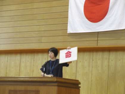 終業式が行われました。式辞では、「夏休みには、自分で考えて行動したり、日頃できないことに挑戦したりしてほしい」と話がありました。また、生徒指導から「命」を大切にすることの話がありました。