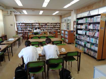 図書室での大中サマースクール最終日です。学習や読書で利用する生徒がたくさんいました。地域・PTAの方々から、いい雰囲気で学習しているというお話も聞きました。2学期以降は、学校司書さんのおられない日も図書室を開館する予定です。開館については、2学期にお知らせします。