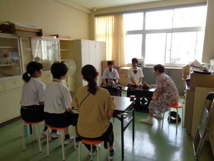 茶道部の様子です。暑いので作法室と家庭科準備室を使っています。風が通っていました。