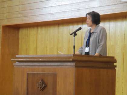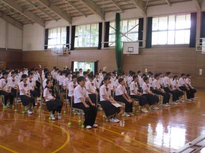 厳粛な雰囲気で行われ、生徒は真剣な表情で聞いていました。