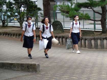 今日から2学期が始まります。元気に「おはようございます」の挨拶を交わしていました。夏休みの課題、大きな作品を持参して嬉しそうな笑顔を見せていました。夏休みのことをぜひ多くの人に話してくださいね。