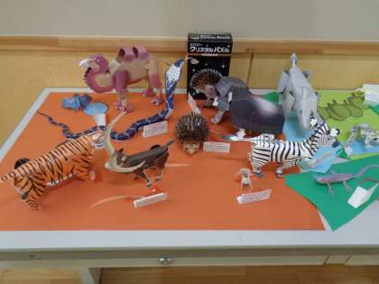 いずみ級で作った作品が展示されていました。いろいろな動物のペーパークラフトです。1つだけ、紙ではないのがあります。分かりますか?