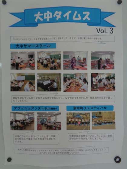 夏休みの活動の写真が生徒玄関前に掲示されました。