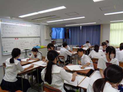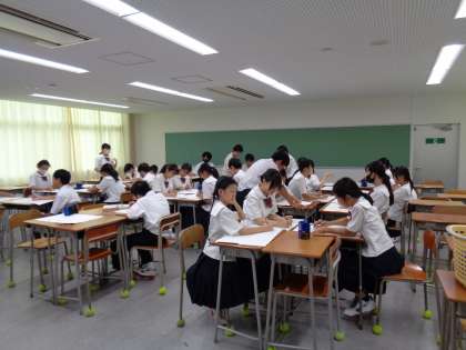 美術の授業をしていました。暑いので、多目的教室で行っています。各自で手のスケッチをしています。