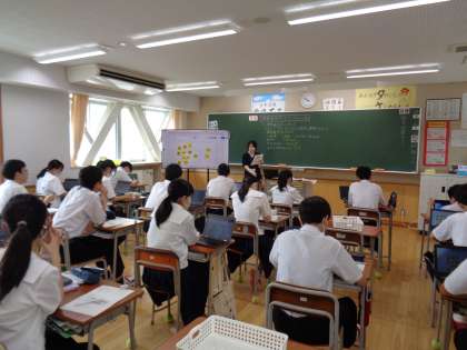 英語と技術家庭科の授業でした。どちらも真剣に取り組んでいます。